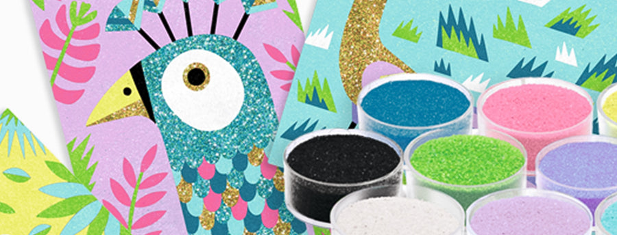 魚をテーマにしたサンドアート製作キットカラフルなサンドとグリッターを組み合わせて、きらびやかな魚たちを描きましょう。4つのイラストをキラキラに彩れます。 【遊び方】ボードのシールを剥がし、サンドをふりかけて色をつけましょう。残ったサンドは集めてポットに戻します。これを繰り返し、絵を完成させます。 うれしい知育効果カラフルなサンドを使い、様々な色に触れることは色彩感覚を養い、お子さまの感性を育みます。また、絵を描く手段は鉛筆やペンだけでないということを理解し、表現方法の幅を広げていきます。 サンドアートサンド&グリッター ダズリング バーズ サンドアートサンドアート デリシャスリーキュート