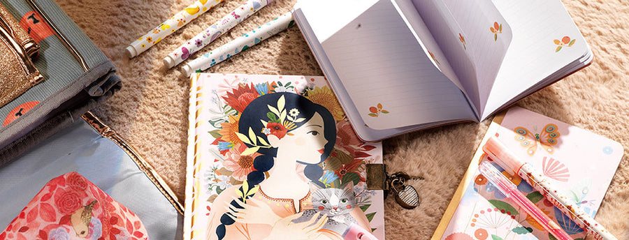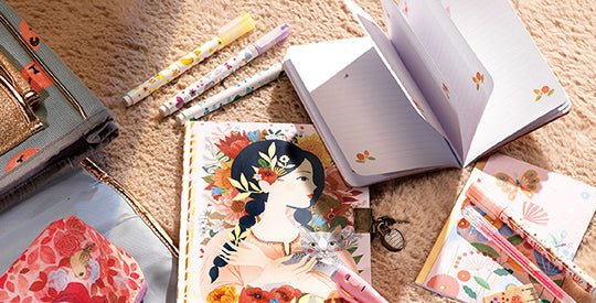 かわいいお花や女の子が描かれたおしゃれなデザインで、持っているだけで気分が上がりそうなノートです。