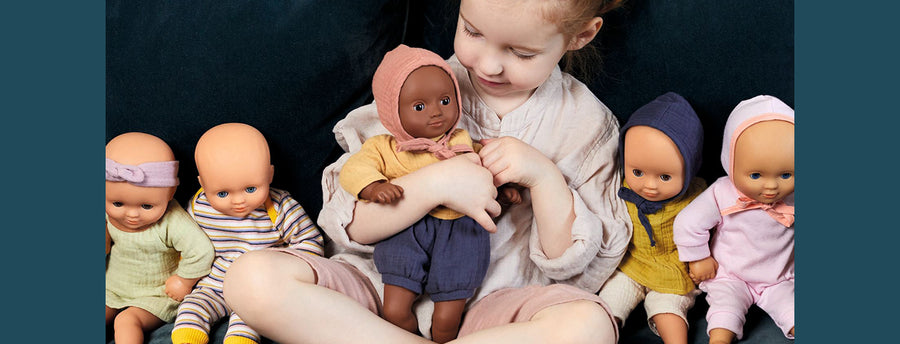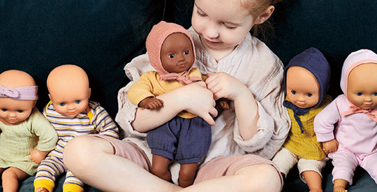 「ボボドゥドゥ」という商品です。フランス語でボボは傷や痛み、ドゥドゥは子どもが安心する物の意味。お世話をすることに興味を持たせ、想像力豊かな思考、社会的スキルやコミュニケーション能力を育みます。
