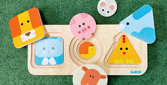 おしゃれでかわいいデザインが人気の、DJECO(ジェコ)の木製パズルです。